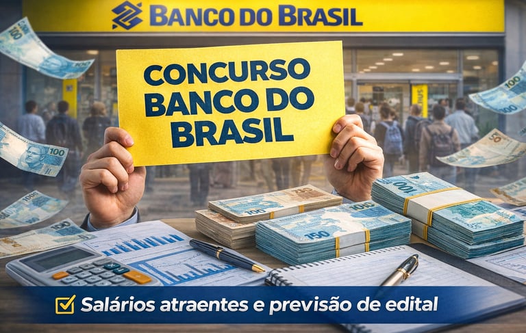 O concurso do Banco do Brasil está entre os mais aguardados do país para quem busca estabilidade profissional, bons salários e carreira no setor bancário. A seleção costuma atrair milhares de candidatos em todo o Brasil, principalmente por exigir apenas nível médio para o cargo mais comum da instituição. Com o término da validade do último concurso e a necessidade de novos funcionários, a expectativa por um novo edital segue alta entre os concurseiros. Neste artigo, você confere as principais informações atualizadas sobre o próximo concurso, salários, requisitos e possíveis datas.